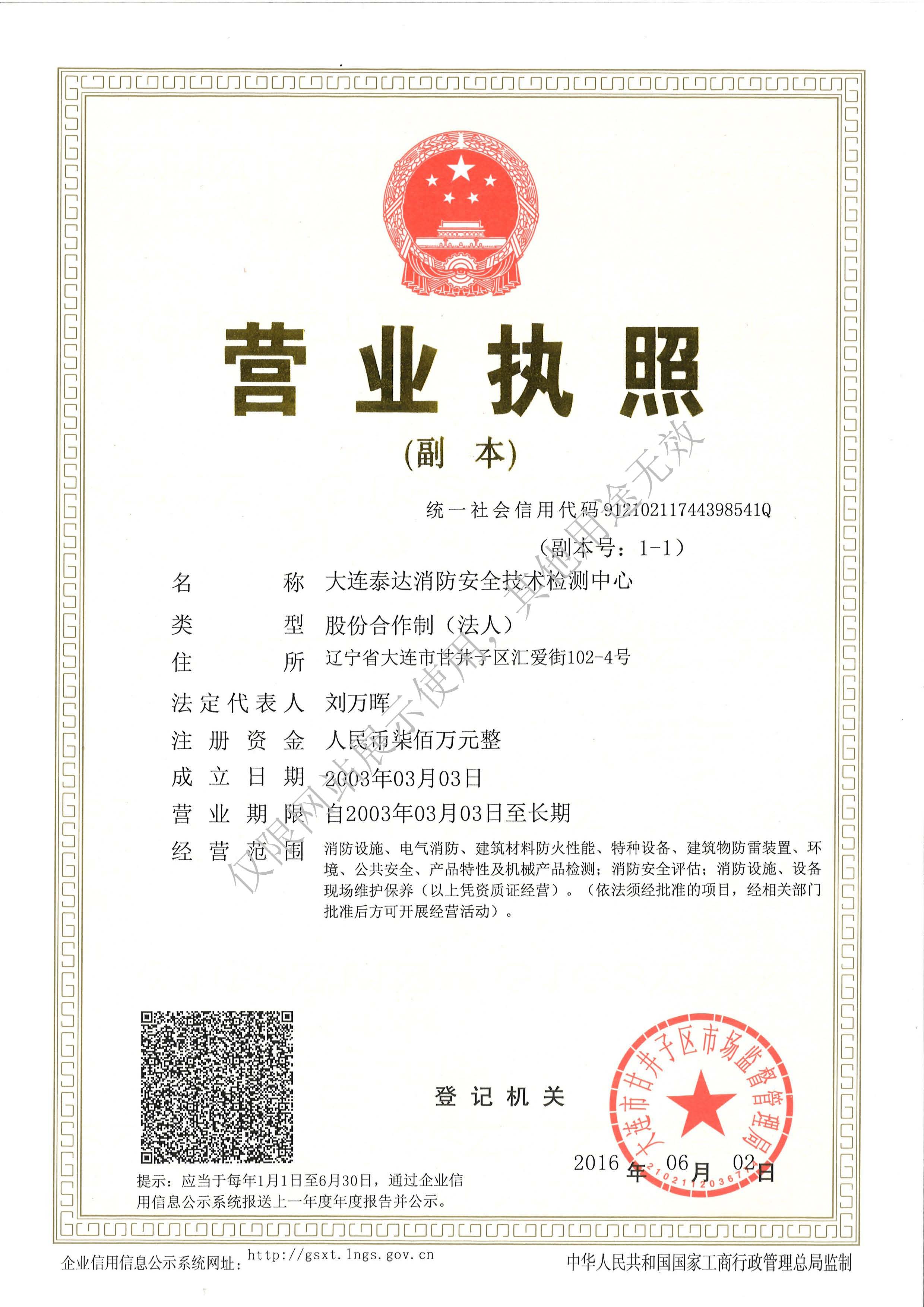 · 是經“社會消防技術服務信息系統”備案并公示的消防技術服務機構,已取得中國氣象局頒發的雷電防護裝置檢測資質證書、遼寧省質量技術監督局審核批準的檢驗檢測機構資質認定證書(CMA)及包括消防檢測、電氣檢測、雷電防護裝置檢測、防火涂層厚度檢測等在內的200余項檢驗檢測能力,取得大連市應急管理局頒發的安全生產標準化證書,獲得質量管理體系、環境管理體系、職業健康安全管理體系認證證書,是經備案的高新技術企業,可獨立出具具有證明作用的檢測報告。